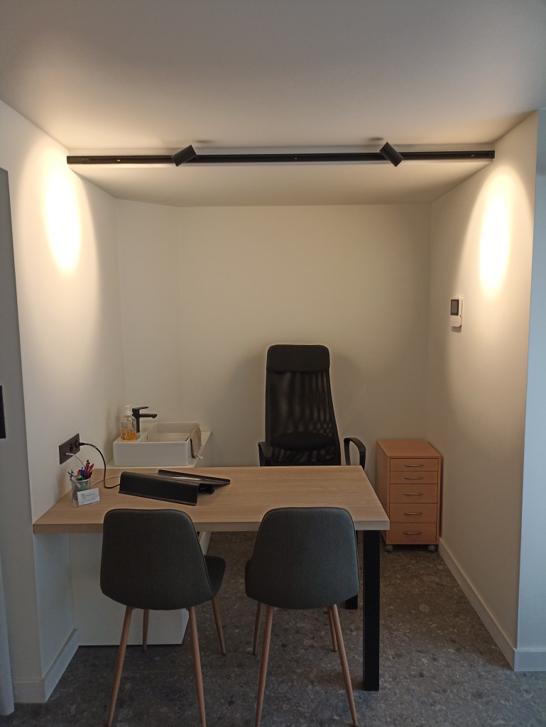 De praktijk beschikt over alle nodige infrastructuur: een wachtzaal, toilet, osteopathie ruimte, kitchenette en lunchhoekje, extra kastruimte – allemaal recent gerenoveerd – én een toffe collega-voetverzorgster.